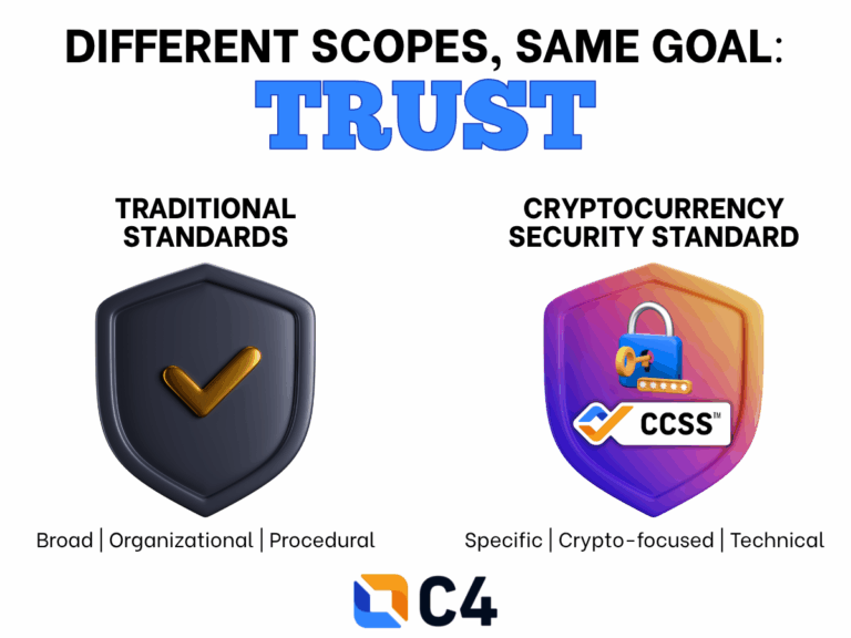 As digital assets become more mainstream, traditional security standards alone are not enough. Traditional frameworks such as ISO 27001 and SOC 2 Type II audits have long been considered the gold standard for information security and organizational controls. Although these frameworks are valuable, they were designed for general IT systems and enterprise data instead of cryptographic assets.